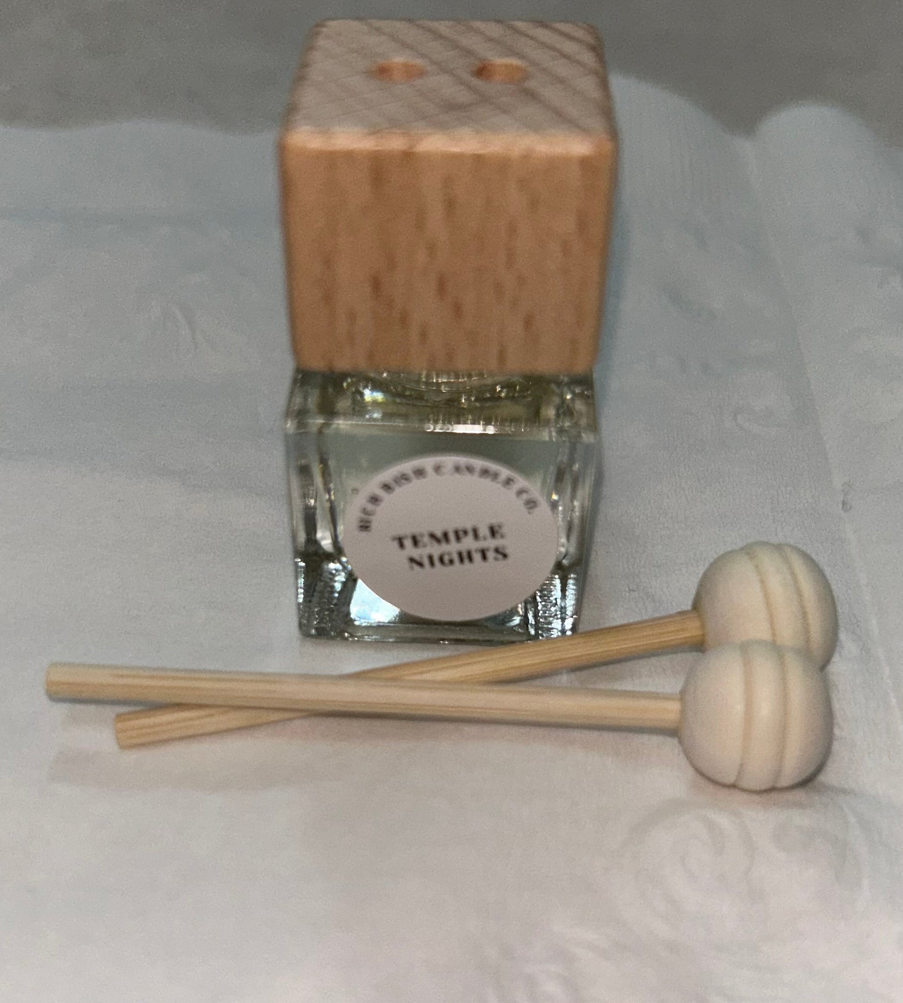 If you liked our Rich Bish Car Scents hanging diffusers, you will love these that clip to your air vents! These diffusers hold 8ml of fragrance making them perfect for the car, closet, or any small room you’re looking to add some fragrance. To use you will unscrew the wooden top from the glass bottle, remove bung (cap keeping oil inside), screw the top back on, place the volatile wooden sticks in the 2 holes on top of the wooden cap, gently tip the diffuser letting the fragrance oil saturate the wood, you are now ready to clip your diffuser in your car!
