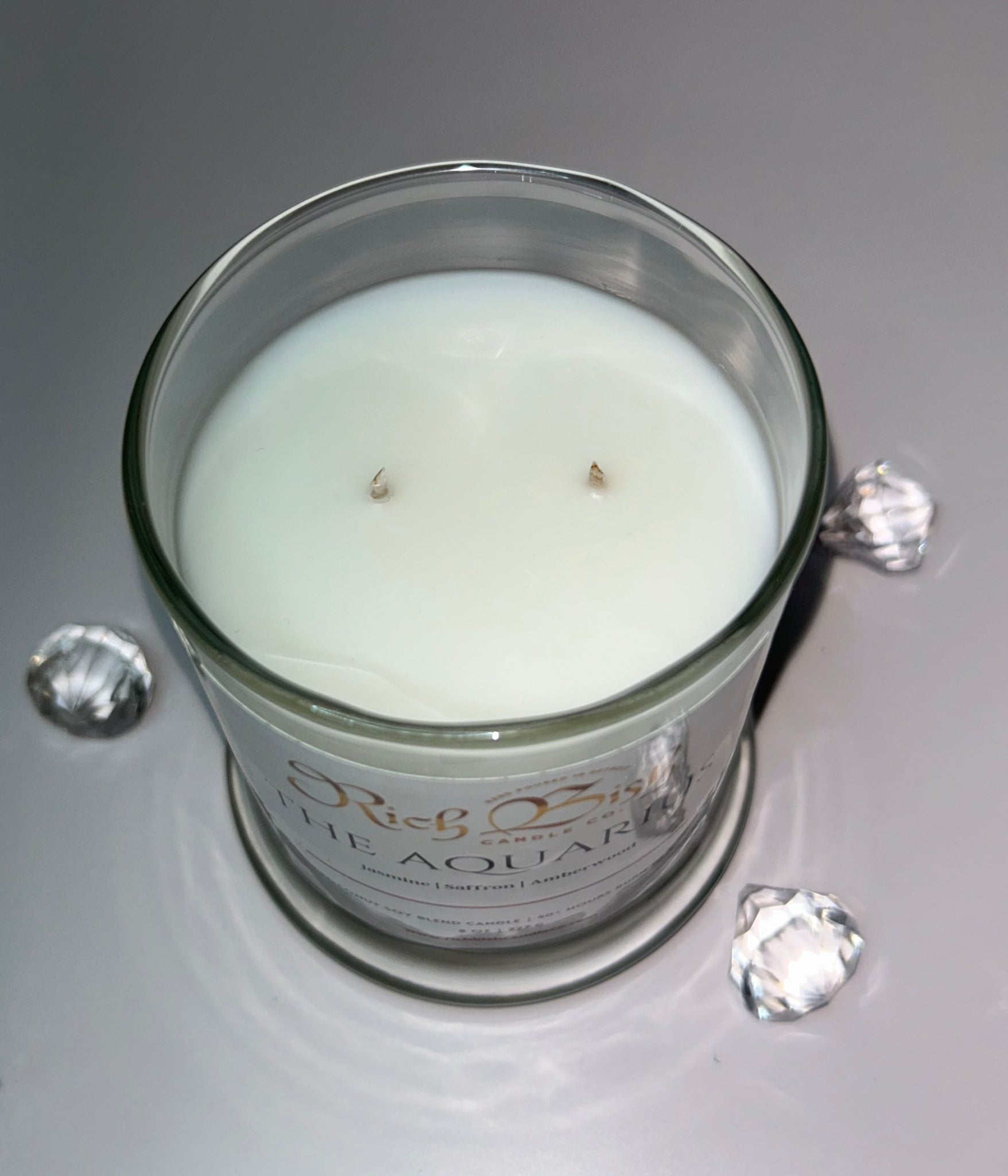 Your favorite wax melt is now a 10oz candle! The Aquarius, inspired by Baccarat 540 by Maison Francis is a harmonious blend of saffron and jasmine dances with the warmth of cedar wood and ambergris. It features deep, warm florals paired with spicy and fruity elements, balanced with smooth, velvety undertones that enhance its seductive allure. Perfect for a bedroom or living room, made with a luxury coconut soy blend wax, double wicked, and cured for over two weeks to ensure a good fragrance throw.